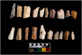 | Description / विवरण | A set of 20 number intact microlithic blades, made of chert. All these blades have retouched and sharp edges. |