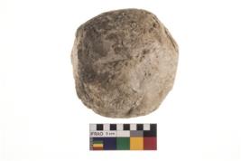 | Description / विवरण | A partially broken specimen of roughly round shaped hammer stone with battered periphery along with the circumference. |