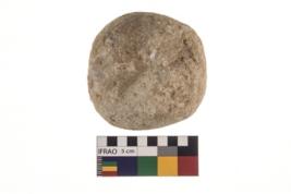 | Description / विवरण | A partially broken specimen of roughly round shaped hammer stone with battered periphery along with the circumference. |