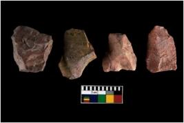 | Description / विवरण | There are n-4 of intact utilized flakes made up of Quartz. Some of them have bulge of percussion and some are flat flakes. |