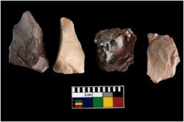 | Description / विवरण | There are n-4 of intact utilized flakes made up of Quartz. Some of them have bulge of percussion and some are flat flakes. |