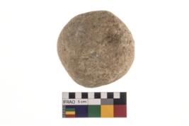 | Description / विवरण | A partially broken specimen of roughly round shaped hammer stone with battered periphery along with the circumference. |