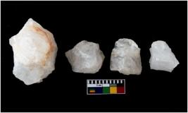 | Description / विवरण | There are n 4 Number of cores and are made up of Quartz. One of them is having impressions of crested ridge flakes. |