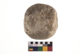 | Description / विवरण | A partially broken specimen of roughly round shaped hammer stone with battered periphery along with the circumference. |