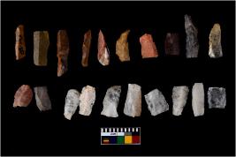 | Description / विवरण | There are n-20 of microliths, among them 9 are quartz, and 11 are of chert. Some of them are partially broken. They show variation in colour, size and shape. Some of them are blunted back blades, points, triangles, trapezes, crescent and truncated blades. |