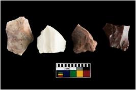 | Description / विवरण | There are n-4 of intact utilized flakes made up of Quartz. Some of them have bulge of percussion and some are flat flakes. |