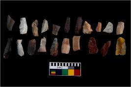 | Description / विवरण | There are n-20 of microliths, among them 2 are quartz, and 18 are of chert. Some of them are partially broken. They show variation in colour, size and shape. Some of them are blunted back blades, points, triangles, trapezes, crescent and truncated blades. |