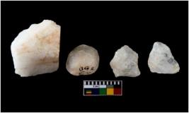 | Description / विवरण | There are n 4 Number of cores and are made up of Quartz. One of them is having impressions of crested ridge flakes. |