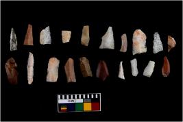 | Description / विवरण | There are n-20 of microliths, among them 7 are quartz, and 13 are of chert. Some of them are partially broken. They show variation in colour, size and shape. Some of them are blunted back blades, points, triangles, trapezes, crescent and truncated blades. |