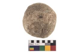 | Description / विवरण | A partially broken specimen of roughly round shaped hammer stone with battered periphery along with the circumference. |