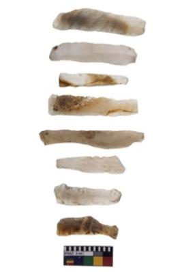 | Description / विवरण | Microlithic blades of varying sizes and raw material. Few blades are showing marks of utilisation. |