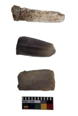 | Description / विवरण | Fluted microlithic cores of varying sizes and raw material. |