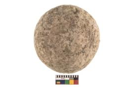 | Description / विवरण | A partially broken speciemen of stone sling ball. |