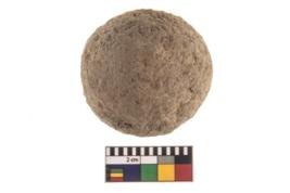 | Description / विवरण | A partially broken speciemen of stone sling ball. |