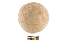 | Description / विवरण | A partially broken speciemen of stone sling ball. |