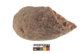| Description / विवरण | A broken specimen of an oval rubber stone cum pounder with oval section. |