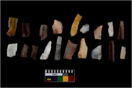 | Description / विवरण | There are n-20 of microliths, among them 4 are quartz, and 16 are of chert. Some of them are partially broken. They show variation in colour, size and shape. Some of them are blunted back blades, points, triangles, trapezes, crescent and truncated blades. |