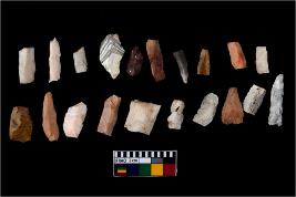 | Description / विवरण | There are n-20 of microliths, among them 4 are quartz, and 16 are of chert. Some of them are partially broken. They show variation in colour, size and shape. Some of them are blunted back blades, points, triangles, trapezes, crescent and truncated blades. |