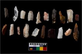 | Description / विवरण | There are n-20 of microliths, among them 4 are quartz, and 16 are of chert. Some of them are partially broken. They show variation in colour, size and shape. Some of them are blunted back blades, points, triangles, trapezes, crescent and truncated blades. |