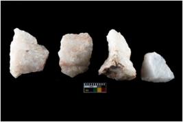 | Description / विवरण | There are n-4 of intact utilized flakes made up of Quartz. Some of them have bulge of percussion and some are flat flakes. |