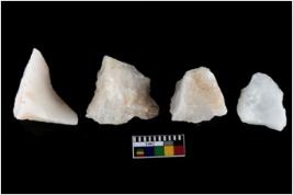 | Description / विवरण | There are n-4 of intact utilized flakes made up of Quartz. Some of them have bulge of percussion and some are flat flakes. |