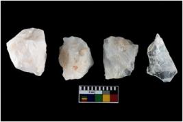 | Description / विवरण | There are n-4 of intact utilized flakes made up of Quartz. Some of them have bulge of percussion and some are flat flakes. |