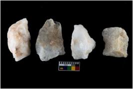 | Description / विवरण | There are n-4 of intact utilized flakes made up of Quartz. Some of them have bulge of percussion and some are flat flakes. |