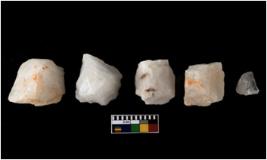 | Description / विवरण | There are n 5 Number of cores and are made up of Quartz. Four of them are having impressions of crested ridge flakes. |
