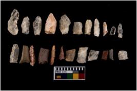| Description / विवरण | A set of 20 number intact microlithic blades, made of chert and quartz . All these blades have retouched and sharp edges. |