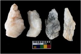 | Description / विवरण | There are n-4 of intact utilized flakes made up of Quartz. Some of them have bulge of percussion and some are flat flakes. |
