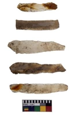 | Description / विवरण | Microlithic blades of varying sizes and raw material. Few blades are showing marks of utilisation. |
