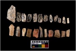 | Description / विवरण | A set of 20 number intact microlithic blades, made of chert and quartz . All these blades have retouched and sharp edges. |