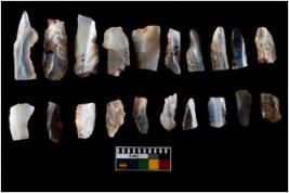 | Description / विवरण | The assemblage is made up of n 20 specimens of mesolithic blades. These are slender micro blades detached from cylindrical cores. In proportion these blades are longer wider and thicker than geometric variety of microliths. |