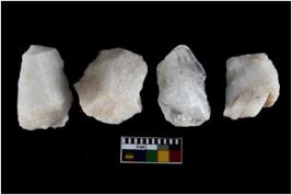 | Description / विवरण | There are n-4 of intact utilized flakes made up of Quartz. Some of them have bulge of percussion and some are flat flakes. |