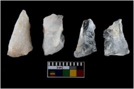 | Description / विवरण | There are n-4 of intact utilized flakes made up of Quartz. Some of them have bulge of percussion and some are flat flakes. |