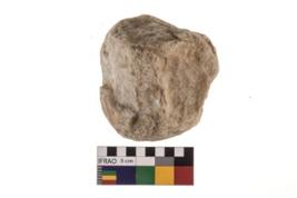 | Description / विवरण | A partially broken specimen of roughly round shaped hammerstone with battered periphery along with the circumference. |