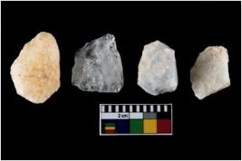 | Description / विवरण | There are n-4 of intact utilized flakes made up of Quartz. Some of them have bulge of percussion and some are flat flakes. |