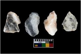| Description / विवरण | There are n-4 of intact utilized flakes made up of Quartz. Some of them have bulge of percussion and some are flat flakes. |