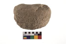 | Description / विवरण | A partially broken specimen of a oval shaped mueller stone with oval section. |