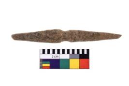 | Description / विवरण | A double-ended bone point which is broken at both the ends. It is eroded from one side and it has a central groove and has dark yellowish brown colour. |