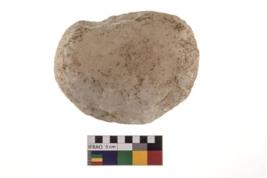 | Description / विवरण | A partially broken specimen of roughly round shaped hammer stone with battered periphery along with the circumference. |