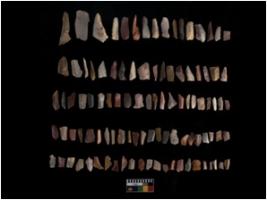 | Description / विवरण | There are n-102 of microliths.All of them are chert. Some of them are partially broken. They show variationn in color, size shape and some are retouched. |