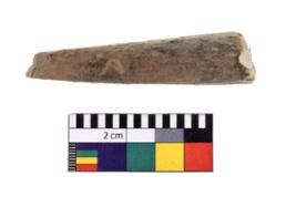 | Description / विवरण | A straight point with conical body and circular cross-section. Its point is broken and has dark yellowish brown colour. |