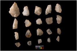| Description / विवरण | There are n-20 of intact flake cores made up of Quartz. Some of them have bulge of percussion and some are flat flakes. |