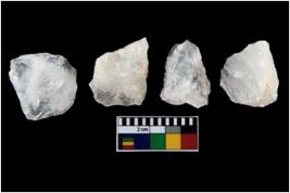 | Description / विवरण | There are n-4 of intact utilized flakes made up of Quartz. Some of them have bulge of percussion and some are flat flakes. |