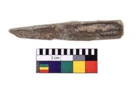 | Description / विवरण | A straight point with conical body and circular cross-section. Its point is broken and has dark brownish black colour. |