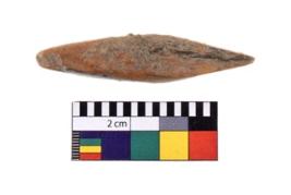| Description / विवरण | A double point, broken at both the ends with a flat body and has a rough surface on one side. It is light yellowish brown in colour. |