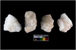 | Description / विवरण | There are n-4 of intact utilized flakes made up of Quartz. Some of them have bulge of percussion and some are flat flakes. |