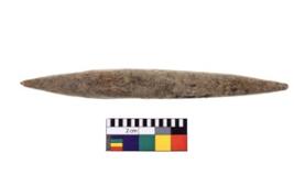 | Description / विवरण | A double-ended point, broken at both the ends, elongated biconical in shape with a circular cross-section and has light yellowish cream colour. |
