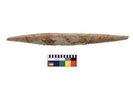 | Description / विवरण | A double-ended point, broken at both the ends, elongated biconical in shape with a circular cross-section and has light creamish colour. |